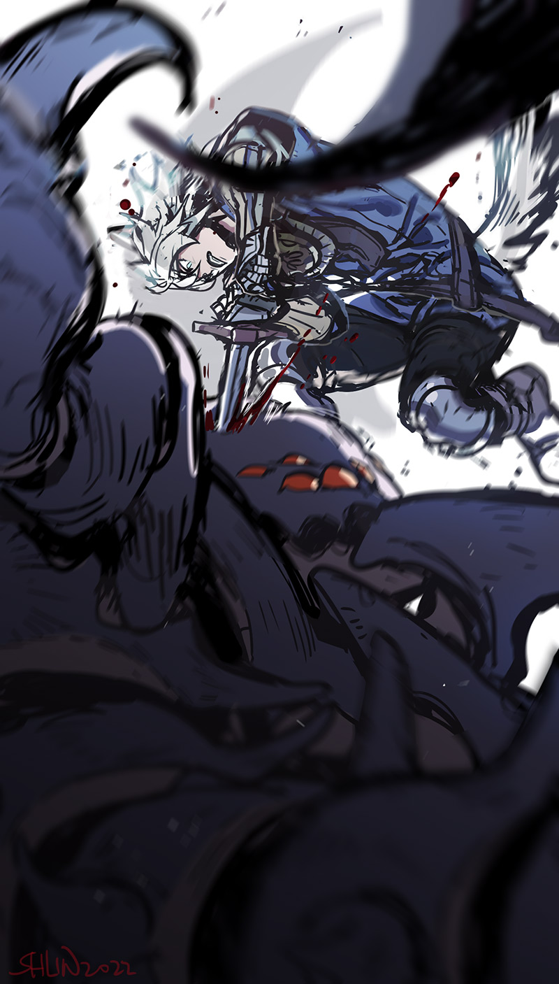 Death is not a stranger to Veloce, but he finds some aspects difficult to reconcile with. The death and departure of a loved one wounds him deeply and stays with him for a long time, the thought looming over his future interactions with others he cherishes, unable to feel closure nor accept the inevitability of it reoccuring. The desecration of the dead also disturbs him; in his fear of undeads, he is unnerved by the autonomy of the dead being taken from them so easily—their bodies made a tool—and his inability to separate the outside force that drives it from the person the body once belonged to. Life is sacred to him, whether or not he realizes it, and his simple view of life makes it difficult for him to accept the robbed time and identity of people and creatures alike. As a result, he often blocks it out of his mind if he can help it.