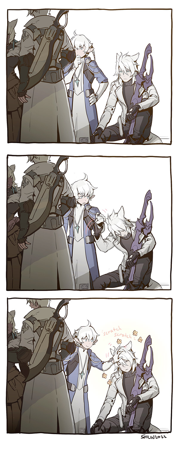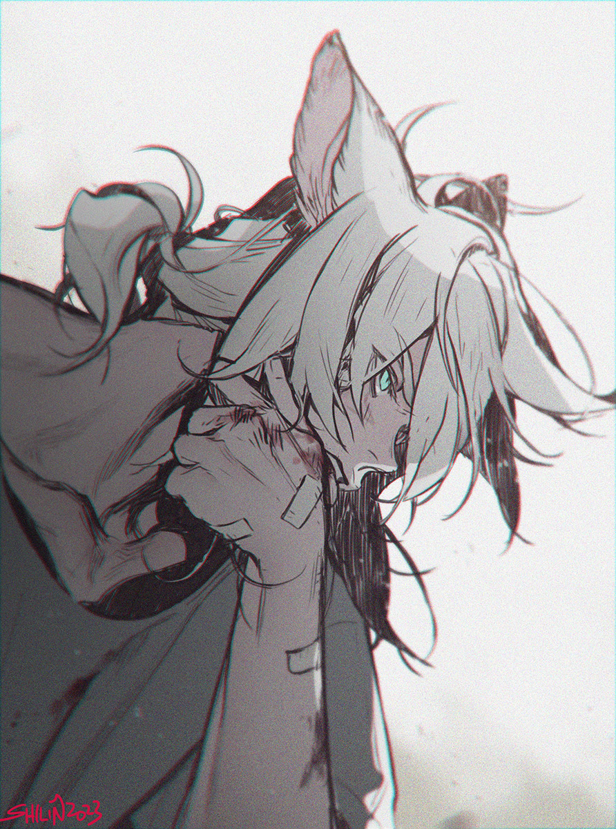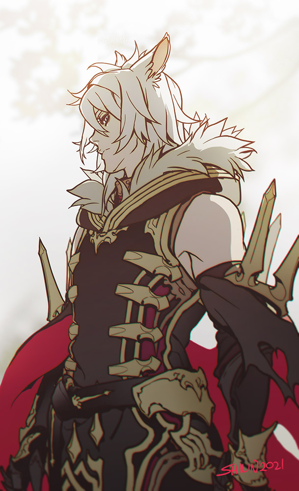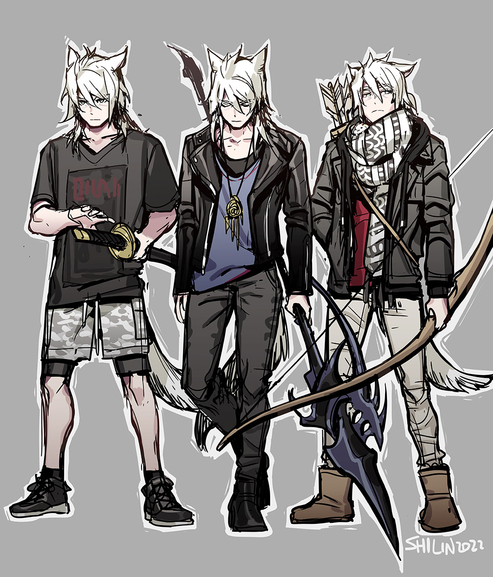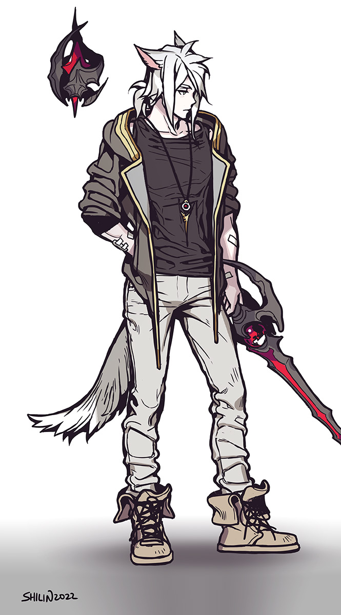 Appearance: Very pale skin, lighter than usual Miqo'te face marks, forearms and hands always covered with small scars and bandages, big scar over his heart