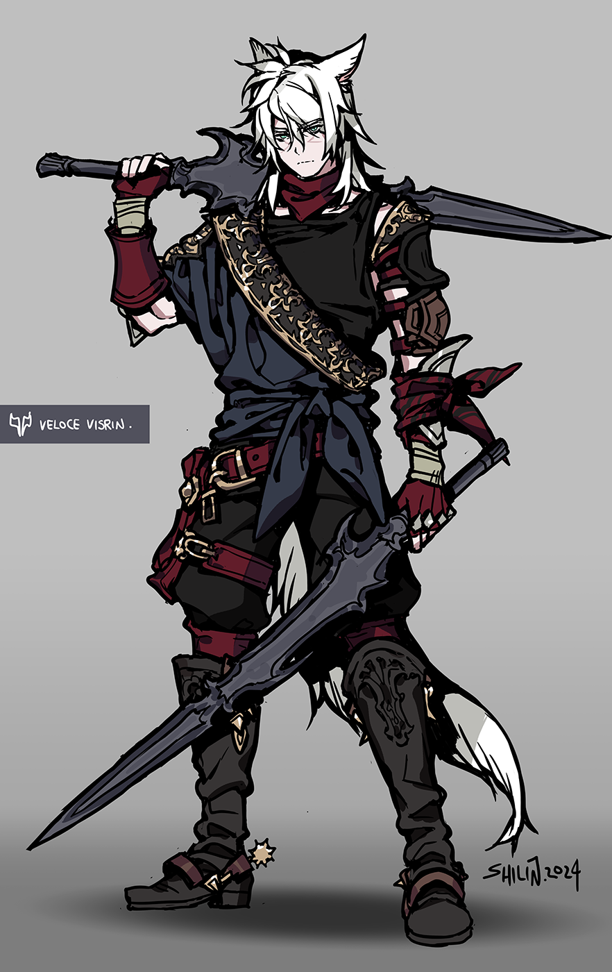 Veloce is a fearsome fighter who expresses this skill as a hunter of all manner of beasts, though circumstances sometimes force him to fight people as well. He is often found traveling the world at a leisurely pace, living a nomadic life in the wilds in search of powerful hunt marks.